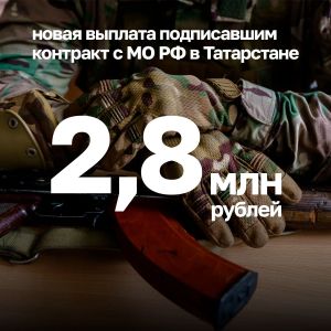 В Татарстане единовременная выплата военнослужащим при заключении контракта с Министерством обороны РФ увеличивается до 2,8 млн рублей.